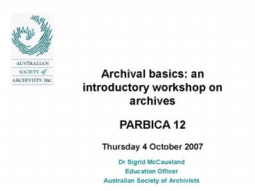 colleagues from other organisations - Keeping Archives new edition in 2008!