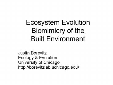Title: Ecosystem Evolution Biomimicry of the Built Environment