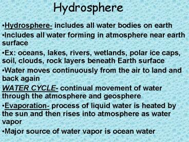 Hydrosphere PowerPoint PPT Presentation