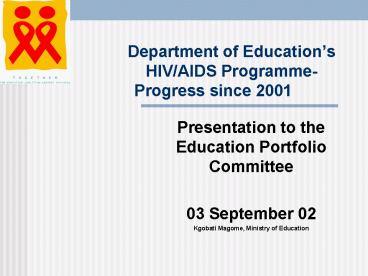 Title: Department of Educations HIVAIDS Programme Progress since 2001