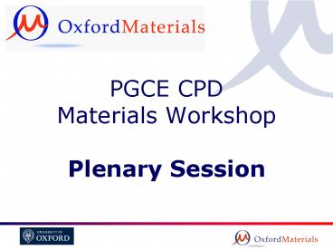 PGCE CPD Materials Workshop Plenary Session PowerPoint PPT Presentation