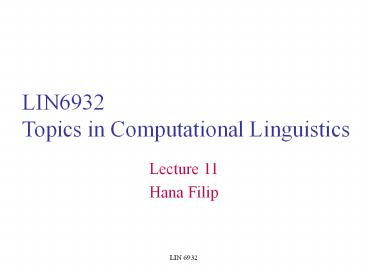 <Notice: Removed> LIN6932 Topics in Computational Linguistics PowerPoint PPT Presentation