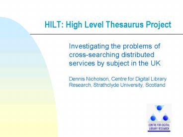 HILT: High Level Thesaurus Project PowerPoint PPT Presentation