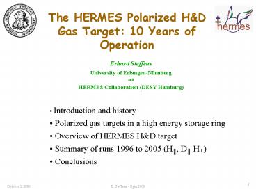 1The HERMES Polarized HD Gas Target 10 Years of