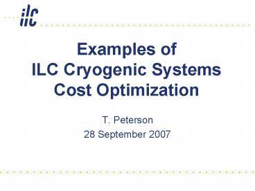 Title: Examples of ILC Cryogenic Systems Cost Optimization