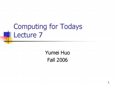 Title: Computing for Todays Lecture 7