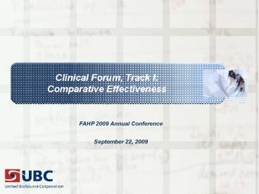 Title: Clinical Forum, Track I: Comparative Effectiveness