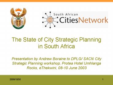 <Notice: Removed> The State of City Strategic Planning in South Africa Presentation by Andrew Boraine to DPLG SACN Cit PowerPoint PPT Presentation