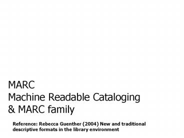 - MARC - 1960s --gt USMARC, CANMARC, UKMARC, etc.