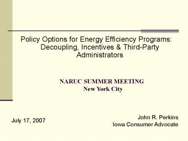 Title: Policy Options for Energy Efficiency Programs: Decoupling, Incentives