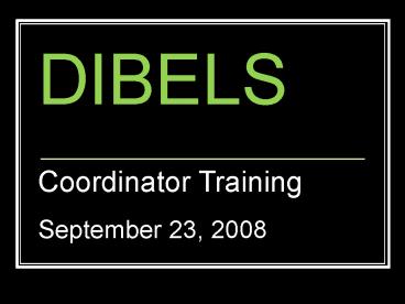 1DIBELS Coordinator Training September 23, 2008