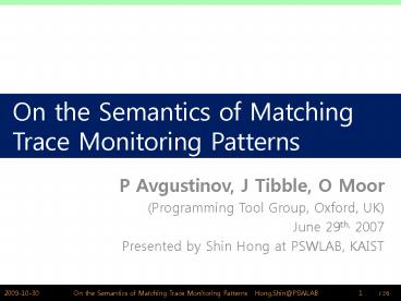 <Notice: Removed> On the Semantics of Matching Trace Monitoring Patterns PowerPoint PPT Presentation