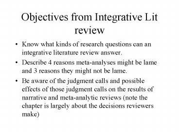Objectives from Integrative Lit review PowerPoint PPT Presentation