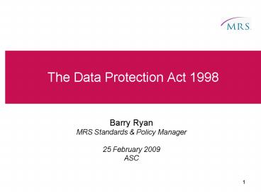 The Data Protection Act 1998 PowerPoint PPT Presentation