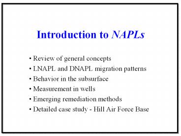 air or NAPLs in the subsurface - NAPL is generally the wetting fluid in air but