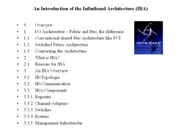 Title: An Introduction of the Infiniband Architecture (IBA)
