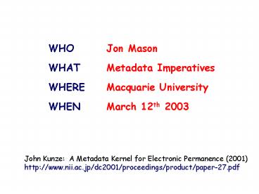 Permanence (2001) http//www.nii.ac.jp/dc2001/proc