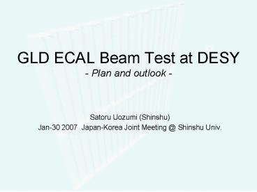 Title: GLD ECAL Beam Test at DESY Plan and outlook