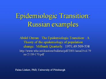 <Notice: Removed> Epidemiologic Transition: Russian examples PowerPoint PPT Presentation