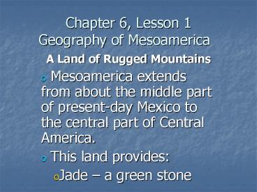Title: Chapter 6, Lesson 1 Geography of Mesoamerica