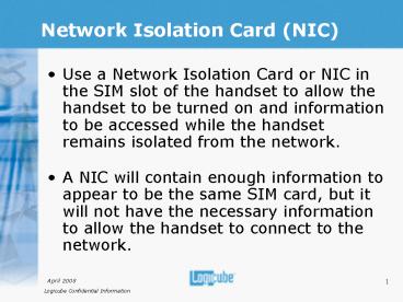 Network Isolation Card NIC PowerPoint PPT Presentation