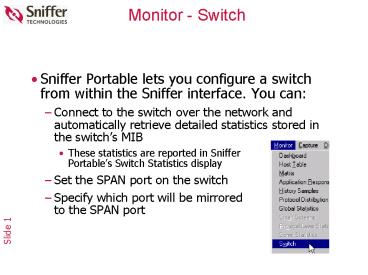 - Sniffer Portable lets you configure a switch from