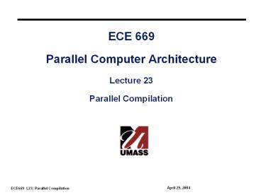 Title: ECE%20669%20Parallel%20Computer%20Architecture%20Lecture%2023%20Parallel%20Compilation