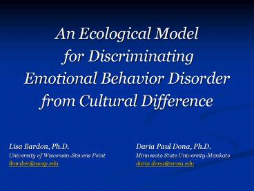 - Lisa Bardon, Ph.D. Daria Paul Dona, Ph.D.