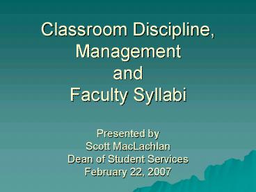 <Notice: Removed> Classroom Discipline, Management and Faculty Syllabi Presented by Scott MacLachlan Dean of Student S PowerPoint PPT Presentation