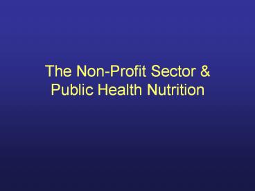 1The Non-Profit Sector Public Health Nutrition