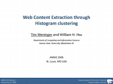 Web Content Extraction through Histogram clustering PowerPoint PPT Presentation