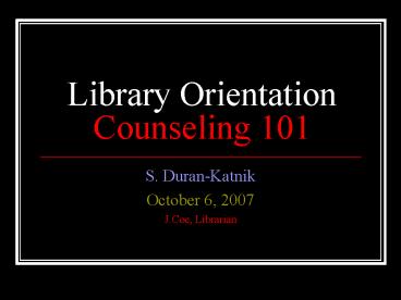 <Notice: Removed> Library Orientation Counseling 101 PowerPoint PPT Presentation