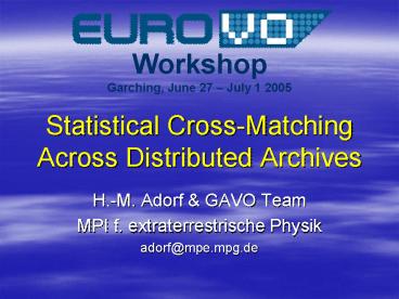 Statistical CrossMatching Across Distributed Archives PowerPoint PPT Presentation