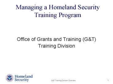 1Managing a Homeland Security Training Program