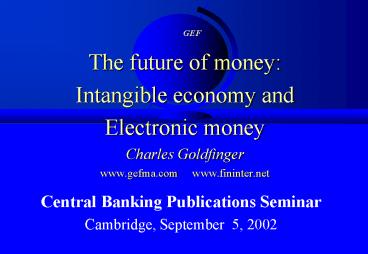 <Notice: Removed> The future of money: Intangible economy and Electronic money Charles Goldfinger www.gefma.com www.fi PowerPoint PPT Presentation