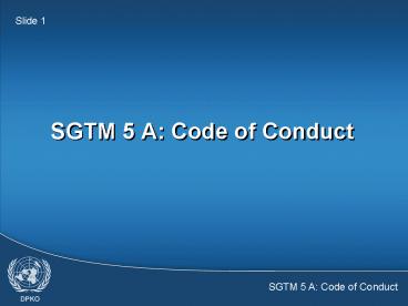 SGTM 5 A: Code of Conduct PowerPoint PPT Presentation