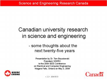 <Notice: Removed> Science and Engineering Research Canada PowerPoint PPT Presentation