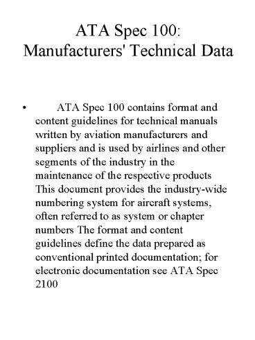 ATA Spec 100: Manufacturers' Technical Data PowerPoint PPT Presentation