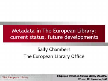 EDLproject (WP1, task 4) www.edlproject.eu - Extend the TEL Metadata Registry to include