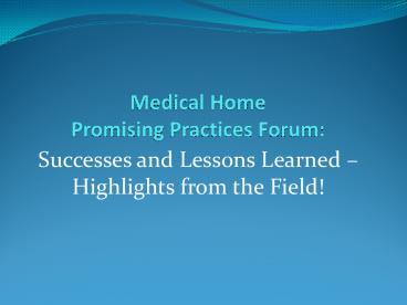 Title: Medical Home Promising Practices Forum: