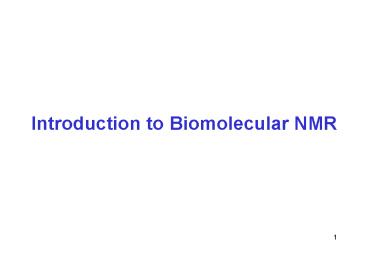 Title: Introduction to Biomolecular NMR
