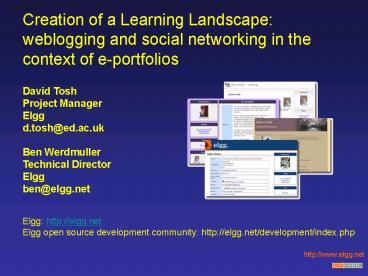 Ben Werdmuller Technical Director Elgg ben_at_elgg.ne