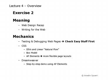 Title: Lecture 4 Overview
