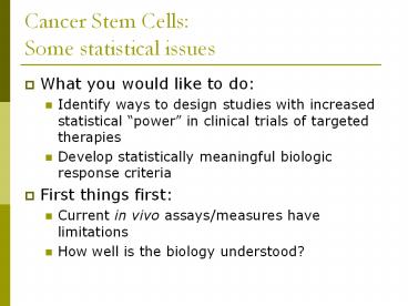 <Notice: Removed> Cancer Stem Cells: Some statistical issues PowerPoint PPT Presentation