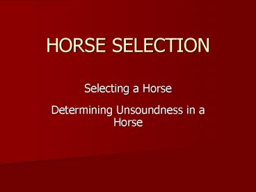 horse should have good peripheral vision - Age can be determined by checking the teeth as a