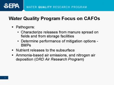Water Quality Program Focus on CAFOs PowerPoint PPT Presentation