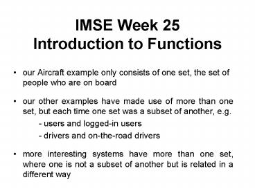 IMSE Week 25 Introduction to Functions PowerPoint PPT Presentation