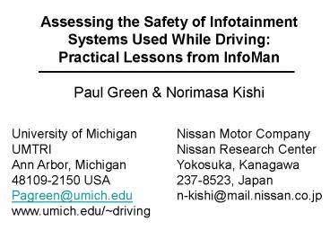 Title: Assessing the Safety of Infotainment Systems Used While Driving: