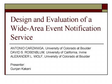 Design and Evaluation of a WideArea Event Notification Service PowerPoint PPT Presentation