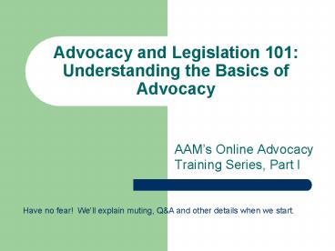 - AAMs Online Advocacy Training Series, Part I
